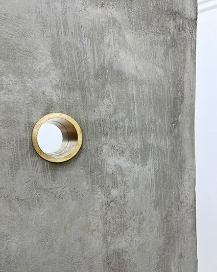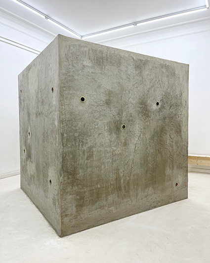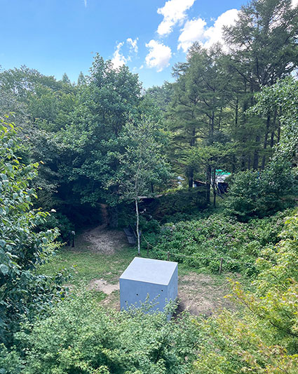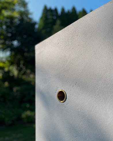 Based in Berlin, Ikegaya + Hayashi + Kamijo are pursuing diverse modes of expression that emerge from the intersection of art and architecture. fernsehen is a sculptural installation that places identical cubes in Rokko, Japan, and in Berlin, linking the two sites through video devices installed inside. The title fernsehen in German means “to watch television,” and its etymology traces back to “seeing into the distance.” Looking through the brass pipe openings cut into the cube, the viewer encounters different layers of vision: a monitor showing the other location, a lens capturing the here and now, a mirror reflecting the viewer’ s own image, or an aperture framing the landscape on the opposite side. In this way, the multilayered nature of “seeing” unfolds as an embodied experience.In Rokko, the movement of plants swaying in the wind and passing clouds appear, while in Berlin, the noise and bustle of the city emerge. When two distant places are simultaneously displayed, the space between them is folded through the work, and gazes intersect across the divide. This experience opens thought toward others afar or toward the future, guiding us toward a deeper, more layered way of seeing.
