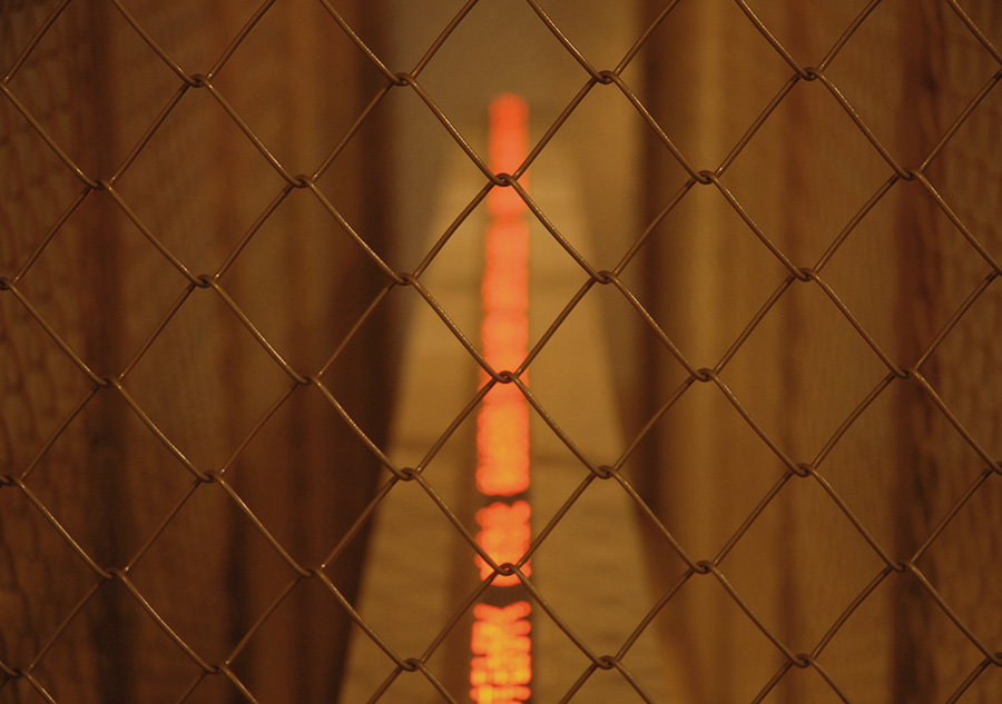 私がいま住むベルリンでは東西が分断されていた時代、資本主義である西ベルリンは周囲をぐるりと壁に囲われることで「自由」な社会を築いてた。その逆説的な「自由」は、現代の日本において、あるいは世界の国々においても社会の陰で存在し得るものではないだろうか。日常のなかで見慣れたフェンスは、権利としての領域を規定し、境界線を引き、他者の侵入を拒むものとして機能する。その領域の中身は守られているのか囚われているのか。Web上に日常が記録され最適化されていく現代社会では、無意識に思考は流され続け、私達の行為はビッグデータという統合体の一部としてみなされていく。延々とつながっていく言葉の連鎖が、領域の中で管理された限りない未来を想起させる一方で、その傍らにはいつも都市の儚さが静かに横たわっている。